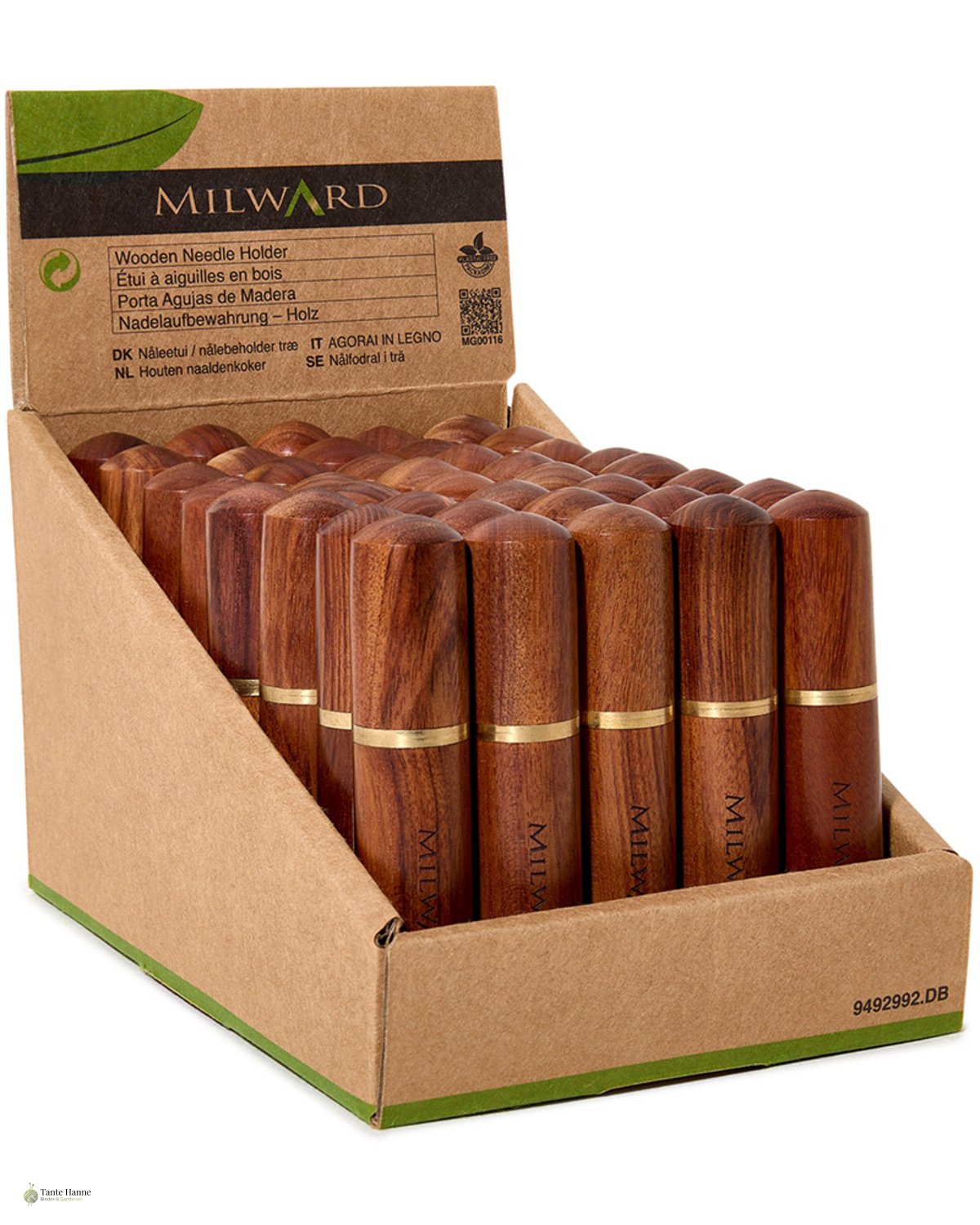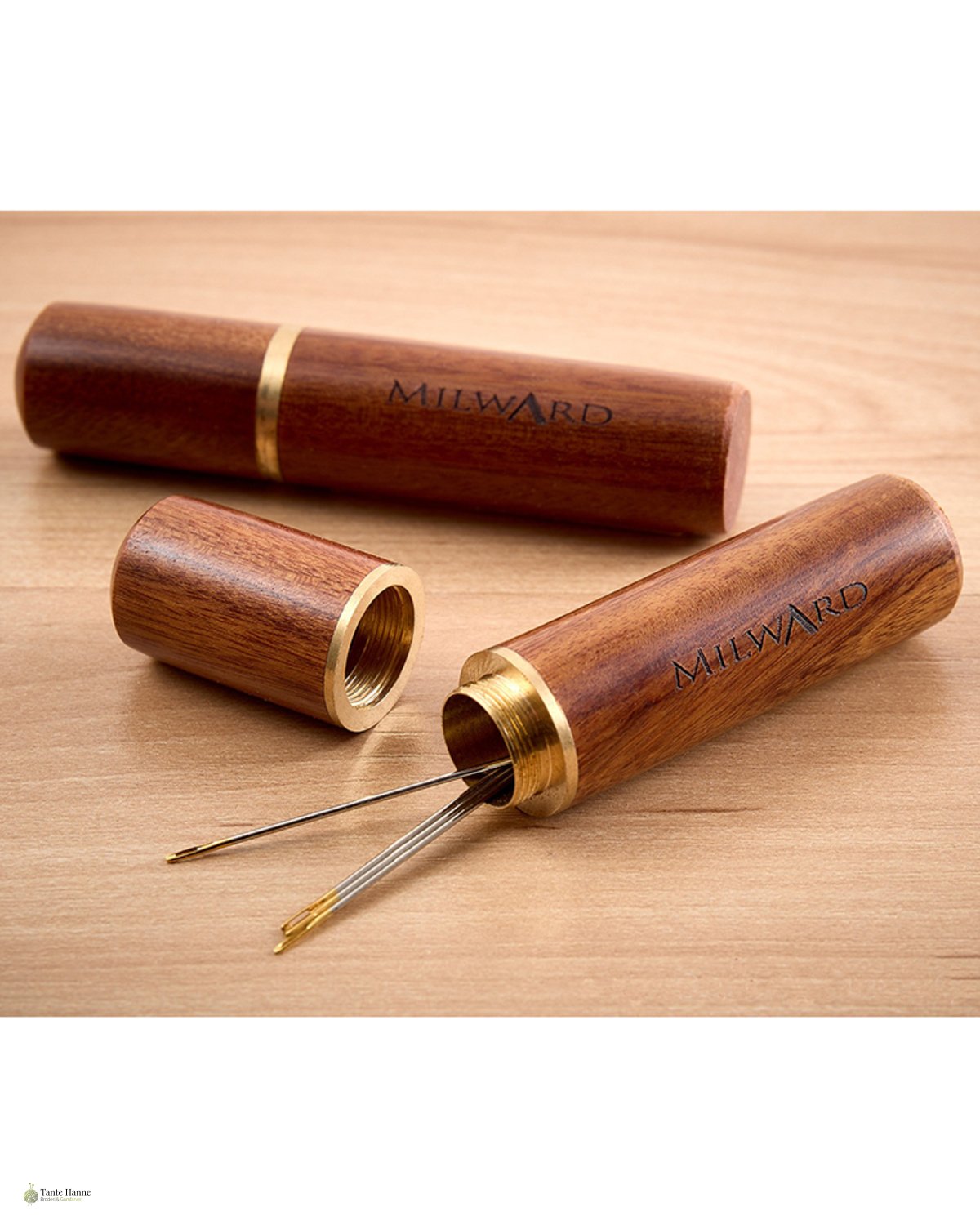 Nåle etui til broderi i træ med messing gevind