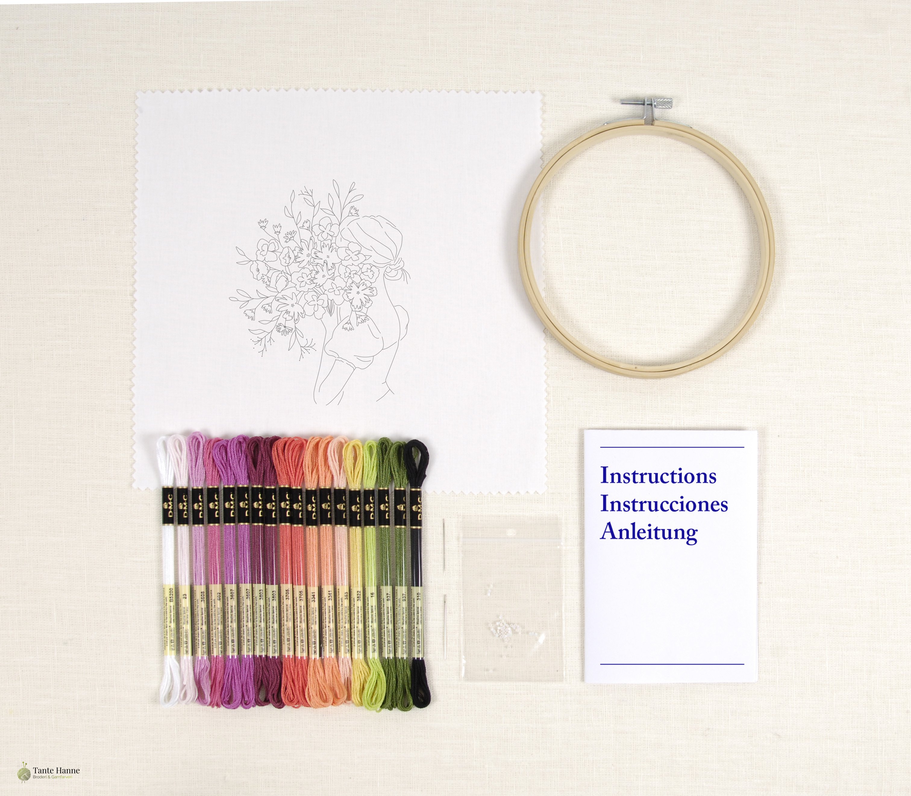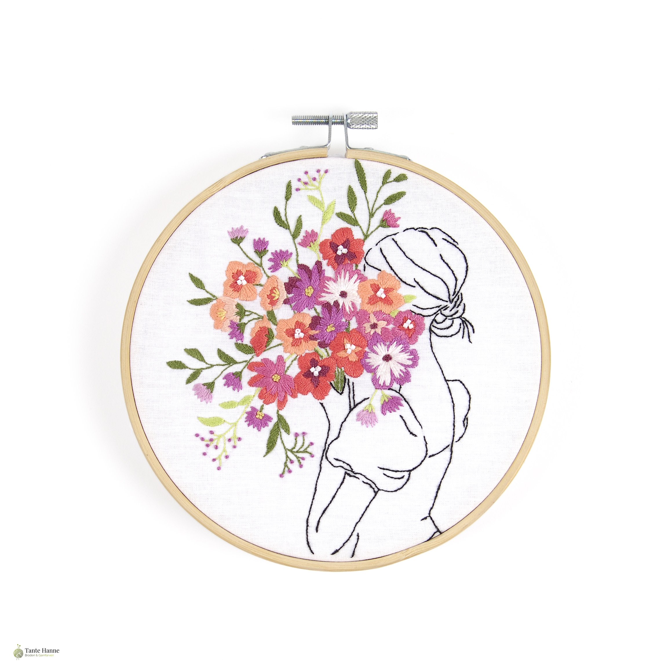 Broderikit fra DMC model Floral Embrace, et fint og smukt broderi til at pynte på din væg.