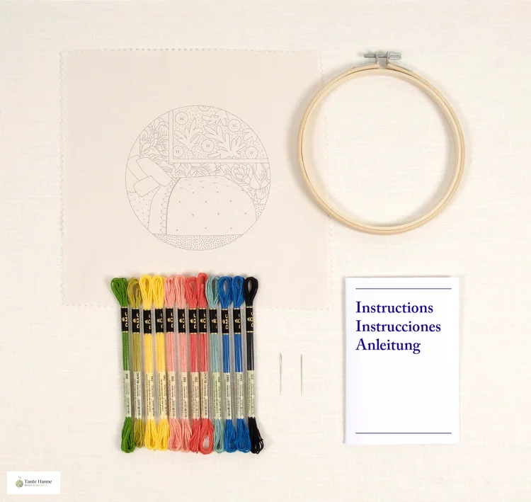 Sættet indeholder alt, hvad du behøver for at komme i gang med at sy, inklusive DMC Mouliné Spécial tråd af flerfarvet bomuld. For hjælp med alle stingene, besøg trin-for-trin-diagrammerne og videovejledningerne på vores hjemmeside.