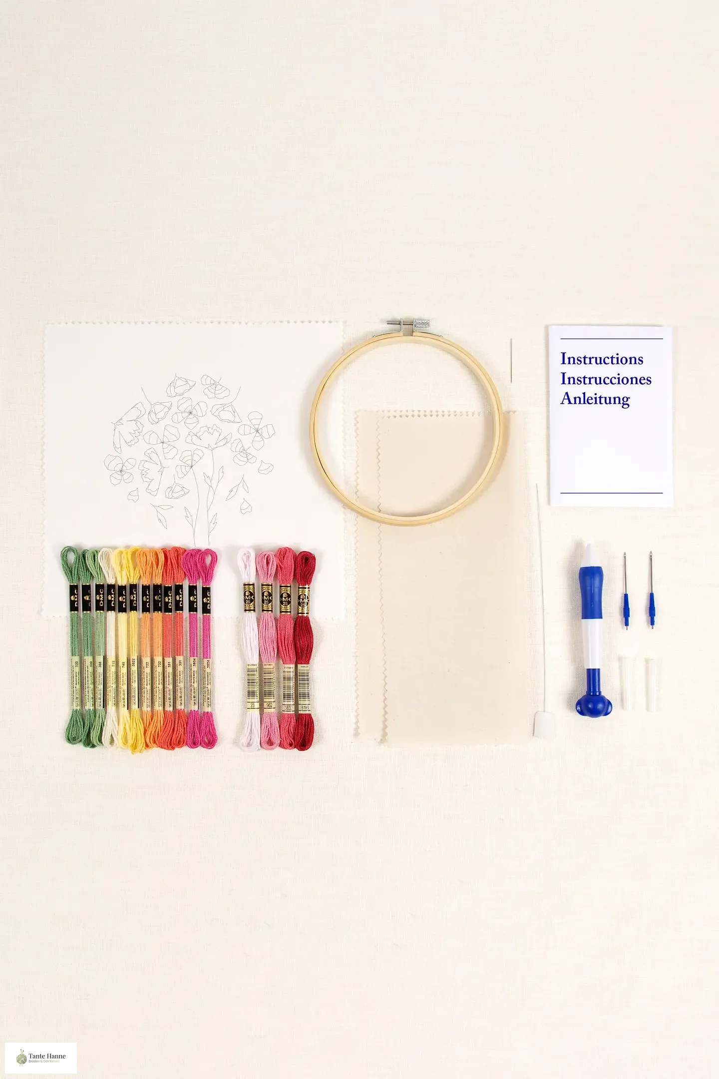 DMC broderi kit Spring Poppies syet med Punch needle.