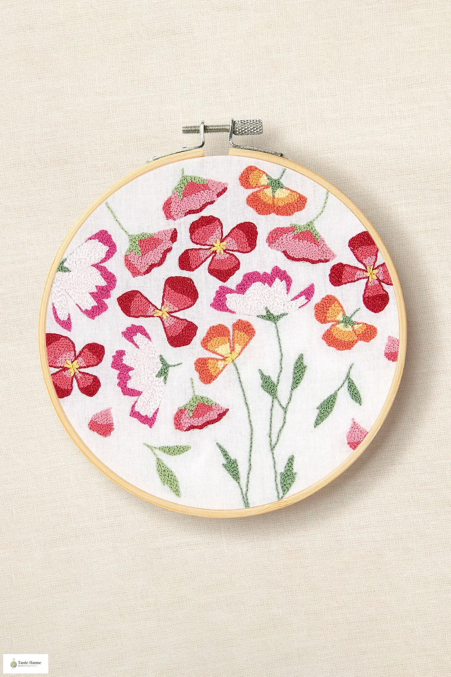 Skab dit eget forårsvalmuedesign med dette mellemliggende kit fra Nathalie Weinzaepflen. Basisstoffet er fortrykt, så det er klar til at nåles direkte ud af kittet.