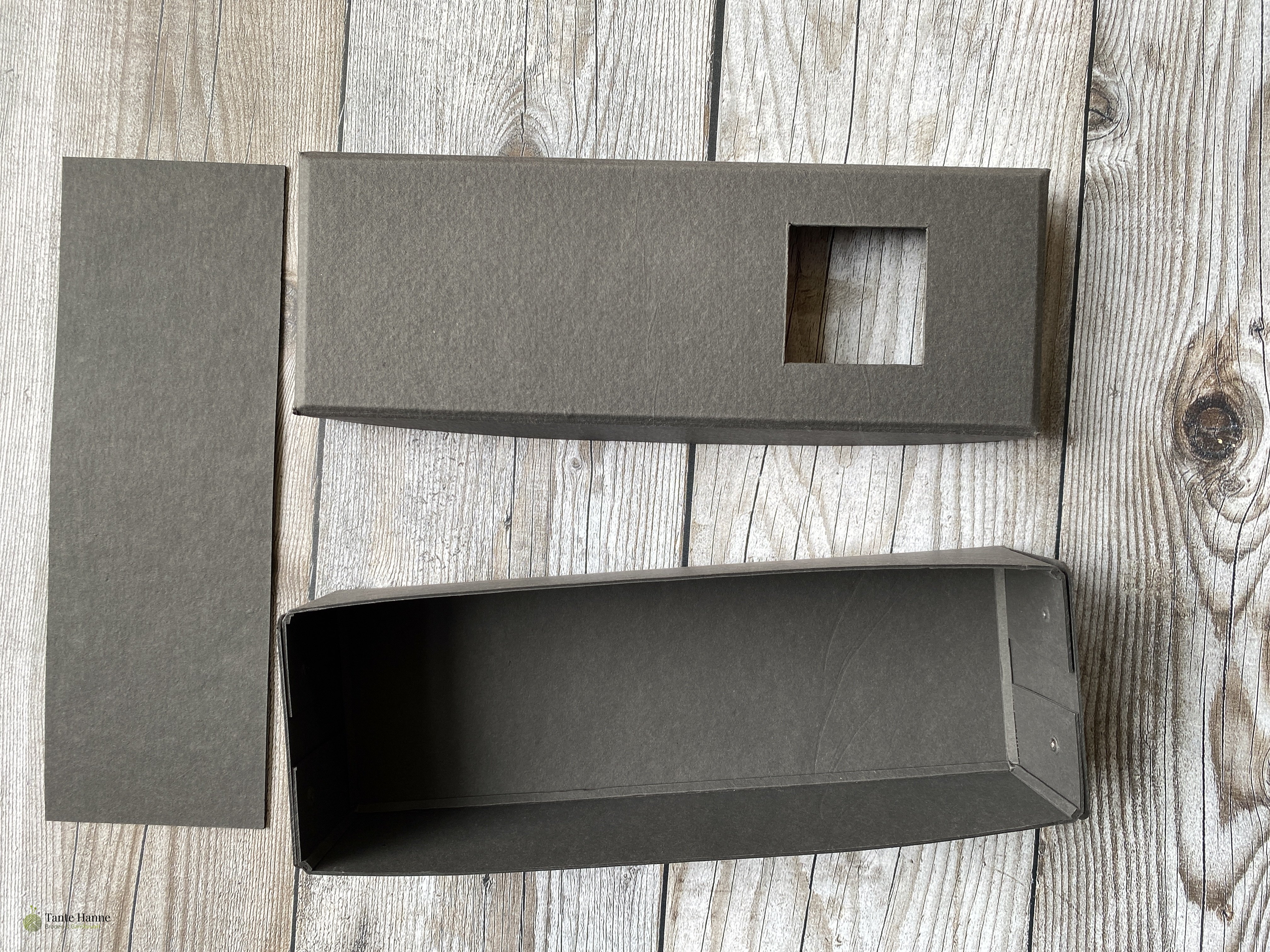 Æske til montage af broderi, 28 x 10 cm, højde 5 cm