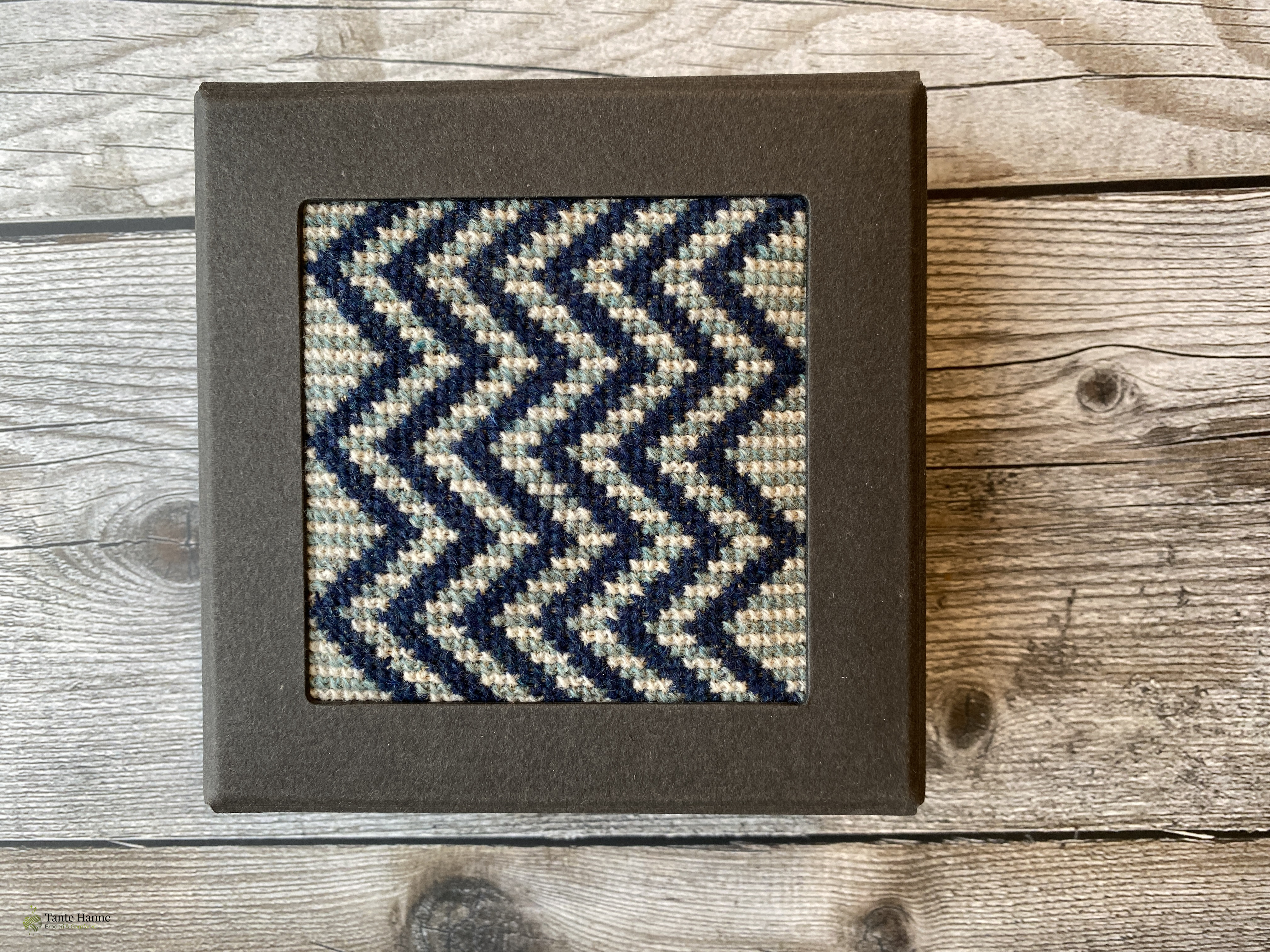 Broderi kit design Tante Hanne model Blå Zigzag og Striber i Æske