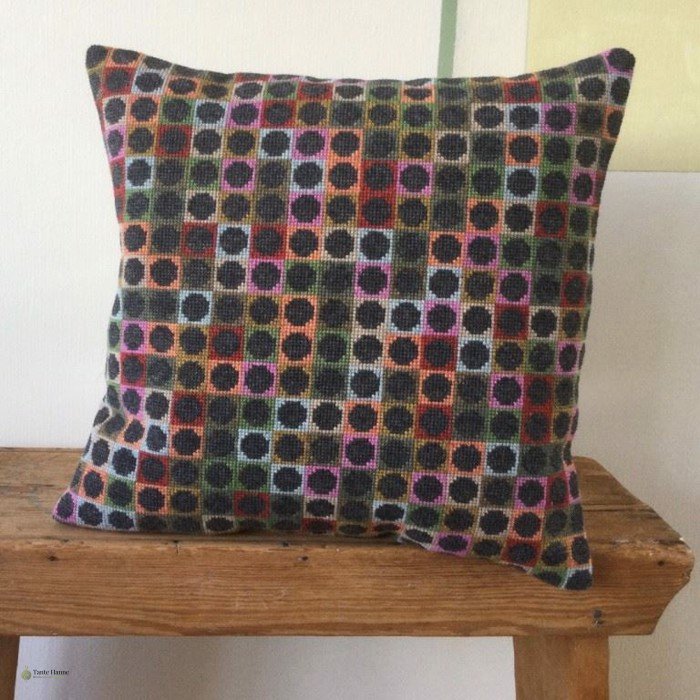 Pick 'n' Mix puden SORTE PRIKKER er en fin pude med samme koncept som de andre broderier i Pick 'n' Mix-serien. Tråden leveres i længder á 75 cm, og du vælger selv om du vil planlægge hvilken farve der skal være omkring en prik, eller om du vil trække en farve tilfældigt.