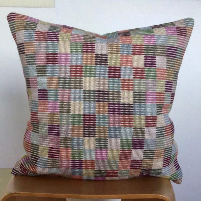FIRKANTER fra BALDYRE er et remix af den klassiske pick´n´mix pude. Puden broderes med 24 farver med et enkelt trekantet motiv som gentages. FIRKANTERNE udfyldes med en ganske tynd lys stribe, som er med til at skabe et overraskende farvespil.