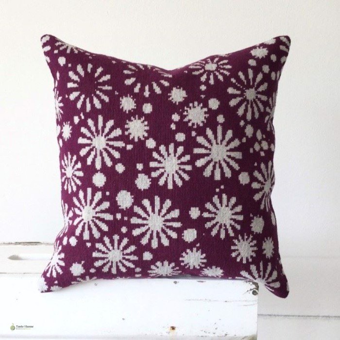 Puden syes med hele korssting på stramaj med 1 tråd uldgarn.
