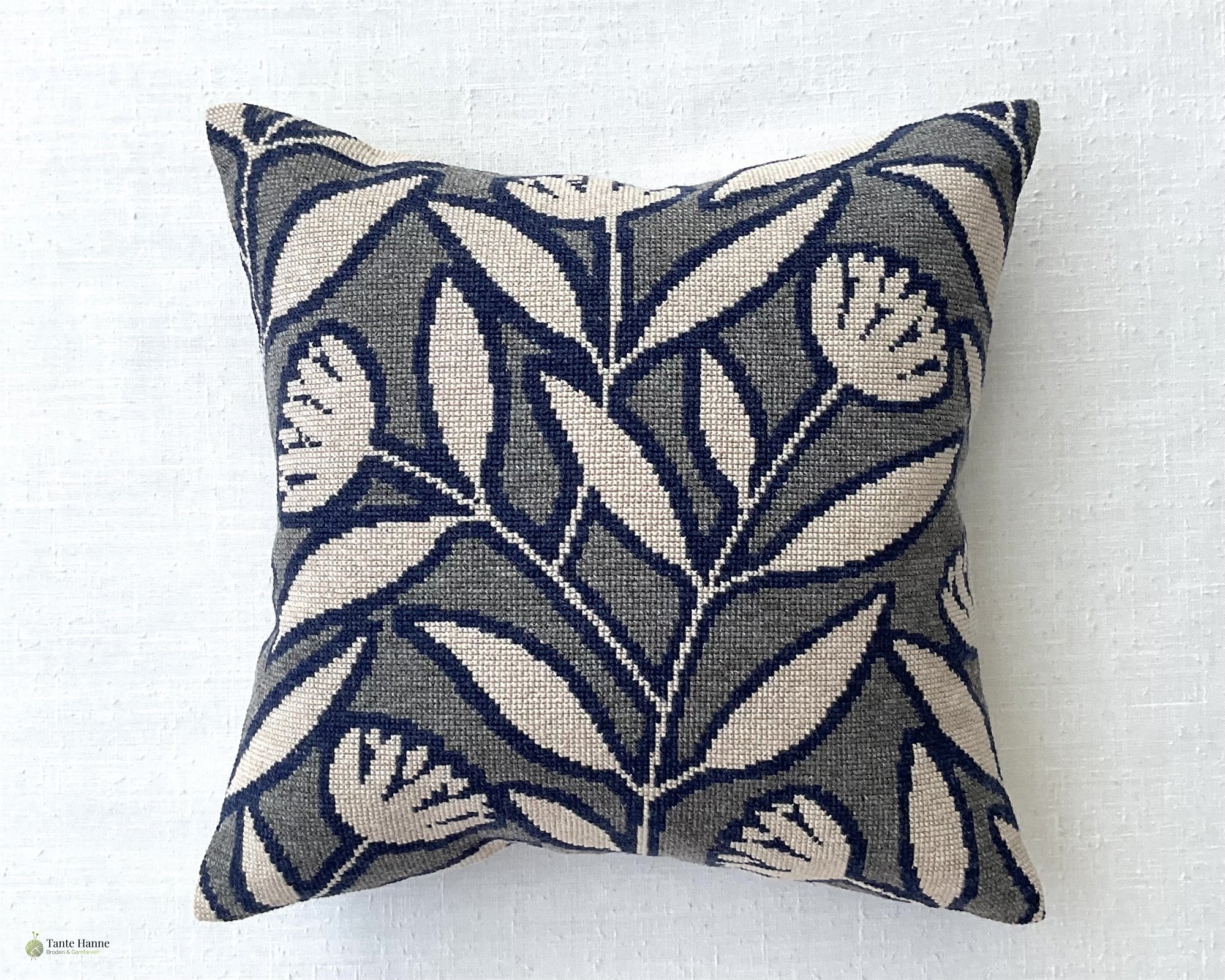 Puden syes med hele korssting på stramaj med 1 tråd uldgarn.