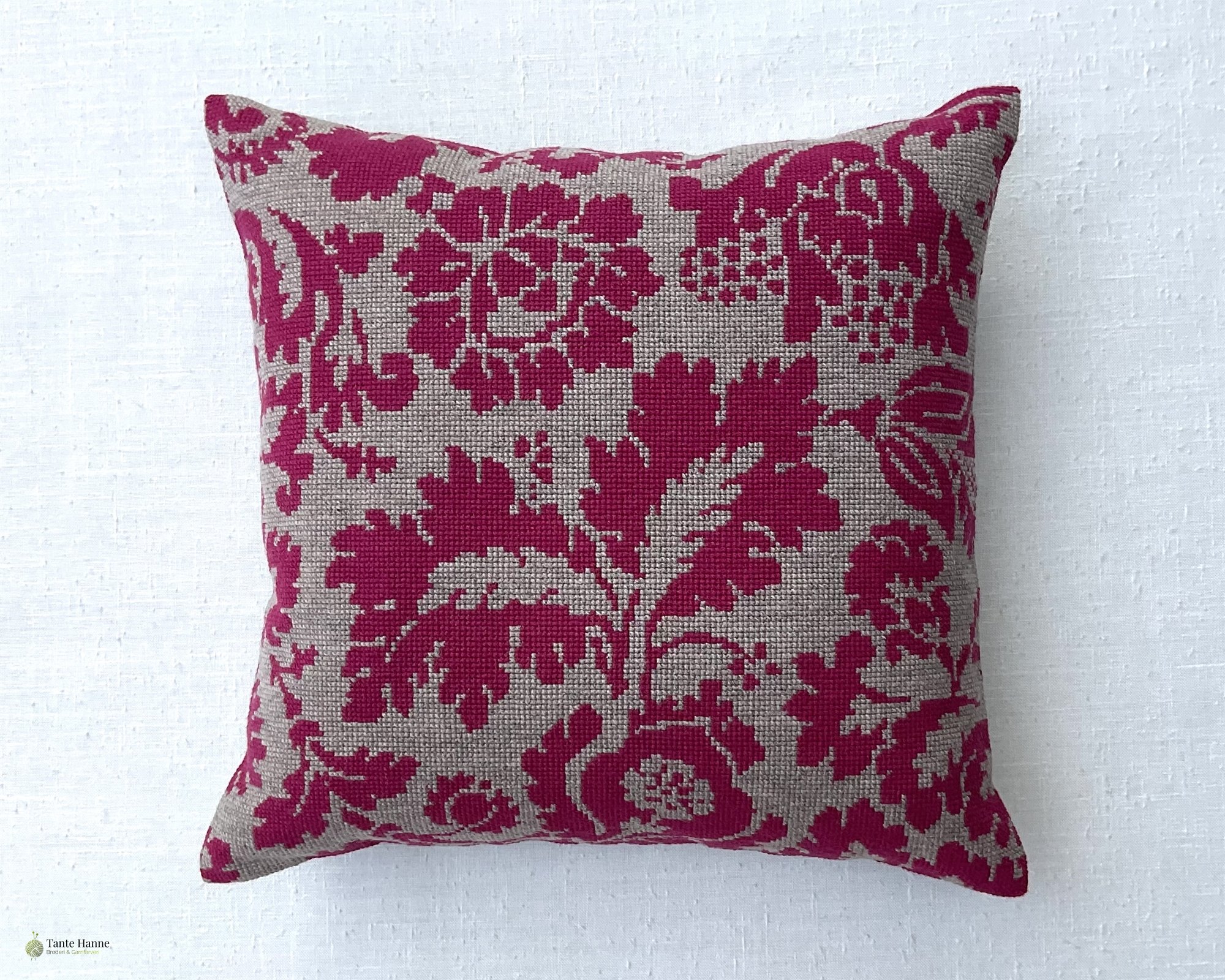 Puden syes med hele korssting på stramaj med 1 tråd uldgarn.