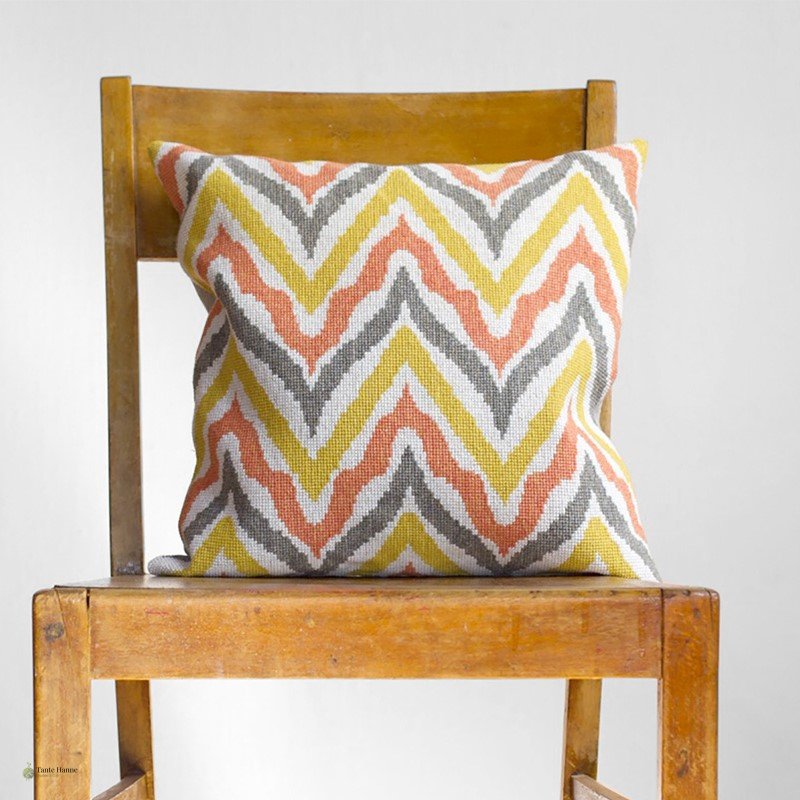Baldyrisk puden syes med hele korssting på stramaj med 1 tråd uldgarn.
