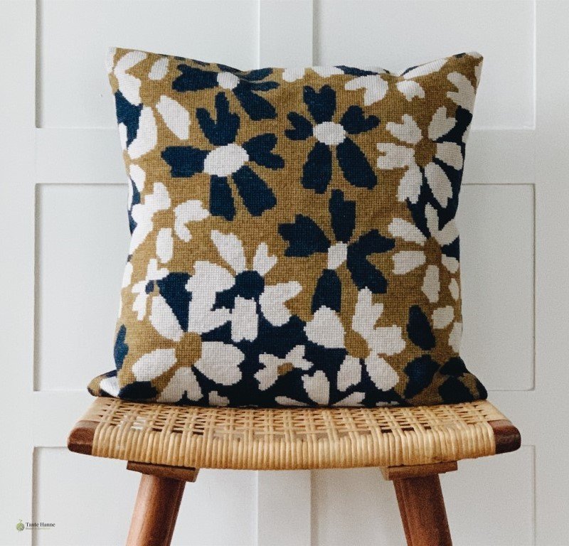 Baldyrisk puden syes med hele korssting på stramaj med 1 tråd uldgarn.